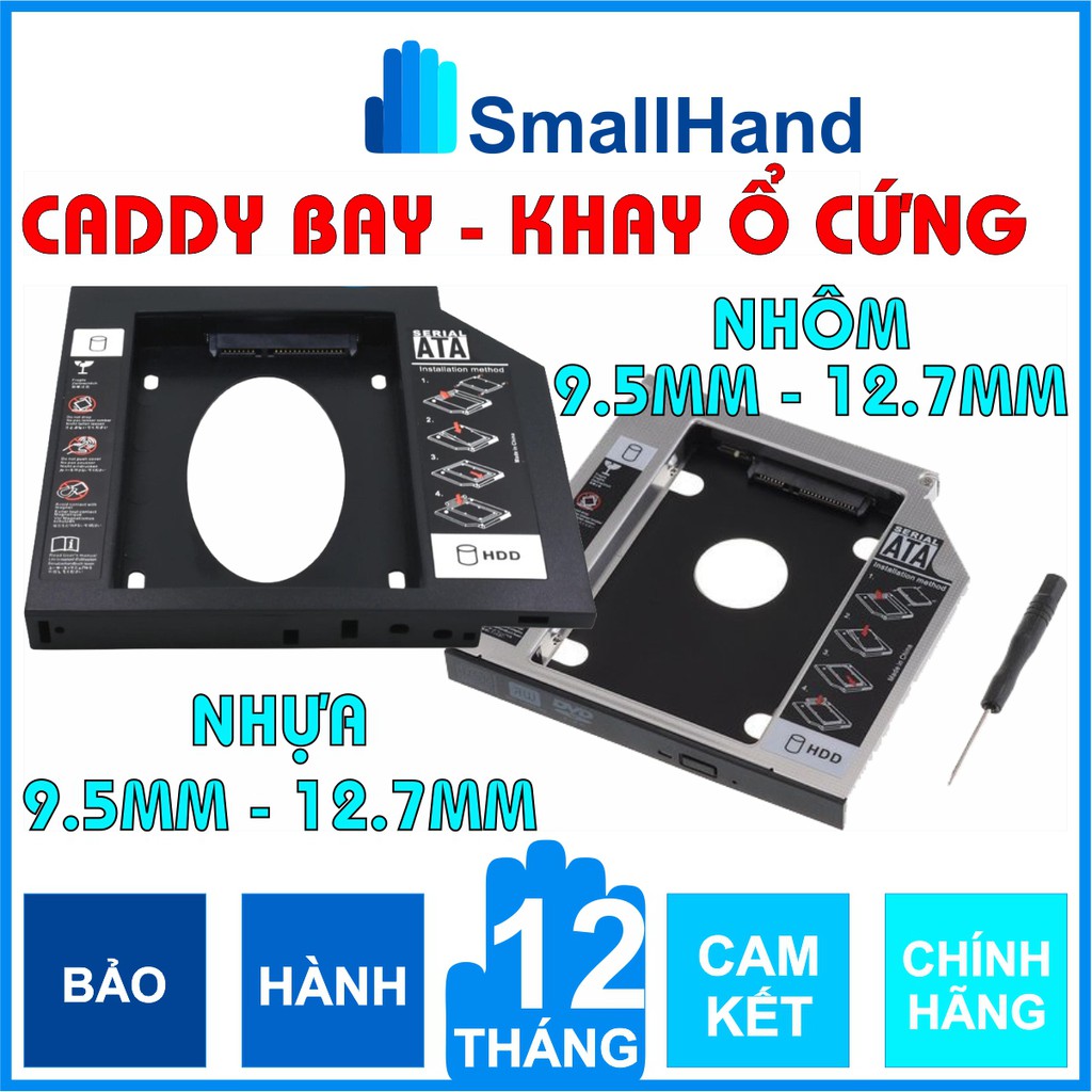 Caddy Bay Sata3 cho SSD và HDD 2,5" - Vỏ Nhôm/Nhựa – Size: 9.5mm và 12.7mm – Khay ổ cứng thay thế ổ DVD free ship