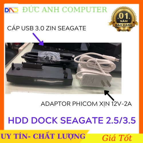 Dock Hdd SEAGATE Dùng Đọc Dữ Liệu Ổ Cứng 2.5 inch - 3.5 inch- Chuẩn USB 3.0. Tặng Kèm Adaptor 12v 2A Xịn và Cáp Usb 3.0 free ship